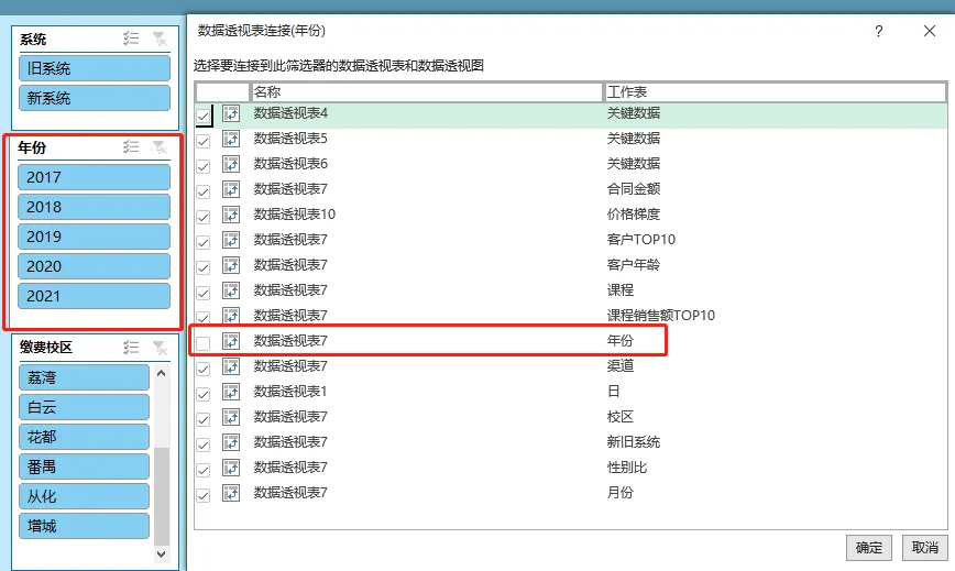 其他切片器依次不连接本身的作为分类的图表,即可。设置切片器后需要逐个调试,排除错误。
