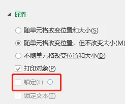 在属性这里,锁定的√去掉,还需要禁止移动改变切片器大小和位置。