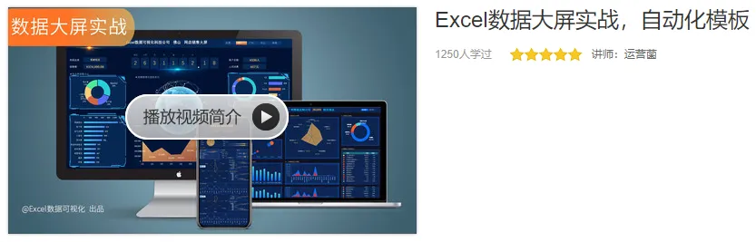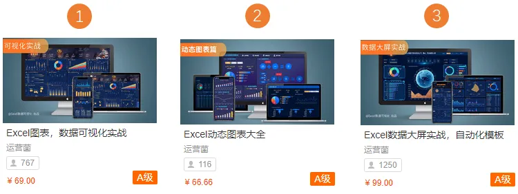 除了数据大屏,我们出品的另外2门可视化课程也非常实用的,他们是递进关系,归属Excel可视化三部曲,分别是《Excel可视化》、《动态图表》、《数据大屏》。