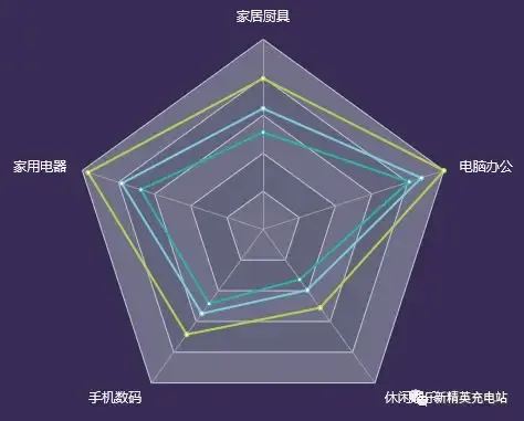雷达图中,面积越大的数据点,就表示越重要。雷达图适用于多维数据(四维以上),且每个维度必须可以排序。但是,它有一个局限,就是数据点最多6 个,否则无法辨别,因此适用场合有限。而且很多用户不熟悉雷达图,阅读有困难。使用时应尽量加上说明,减轻阅读负担。