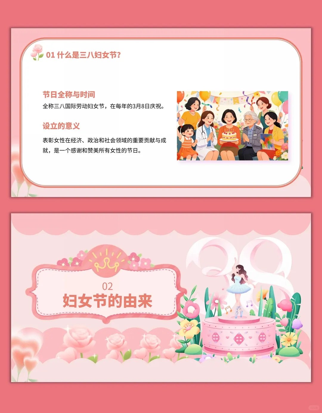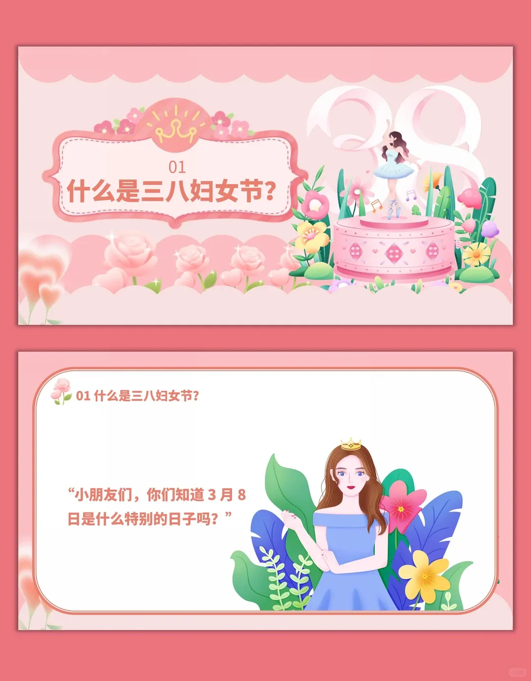 【妇女节PPT】唯美清新38妇女女王节三八妇联课件