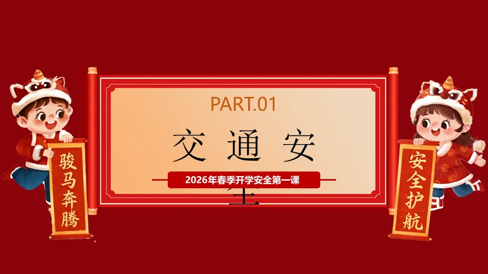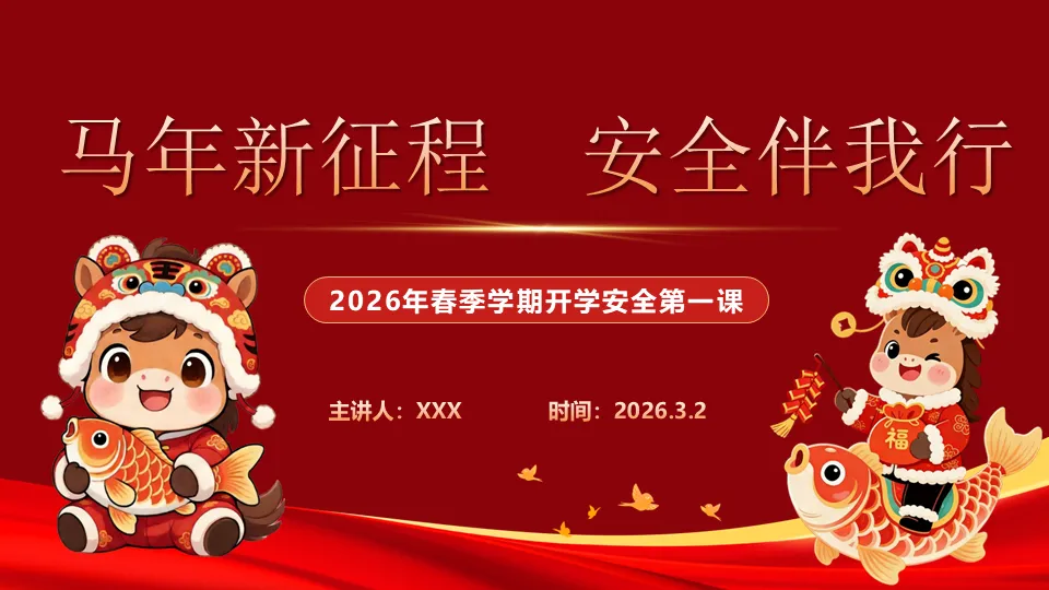 当前位置:首页>PPT>PPT+讲稿:【通用】2026年春季开学安全第一课主题班会:马年新征程,安全伴我行