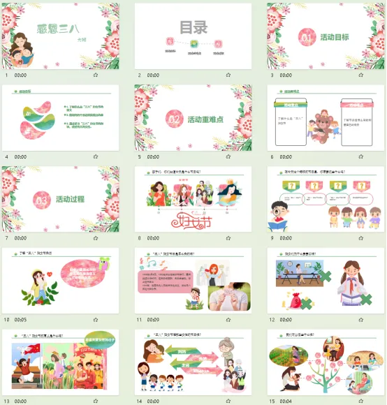 引导孩子们了解妇女节的意义,培养他们帮助妈妈干利索能及的事情的能力,并通过学习妇女节的知识,让他们感受女性的伟大。激发孩子们对妇女节的兴趣和认识,促进他们的情感体验、语言表达能力和价值观培养,使活动充满互动性和乐趣,达到教学和启发的综合目的。