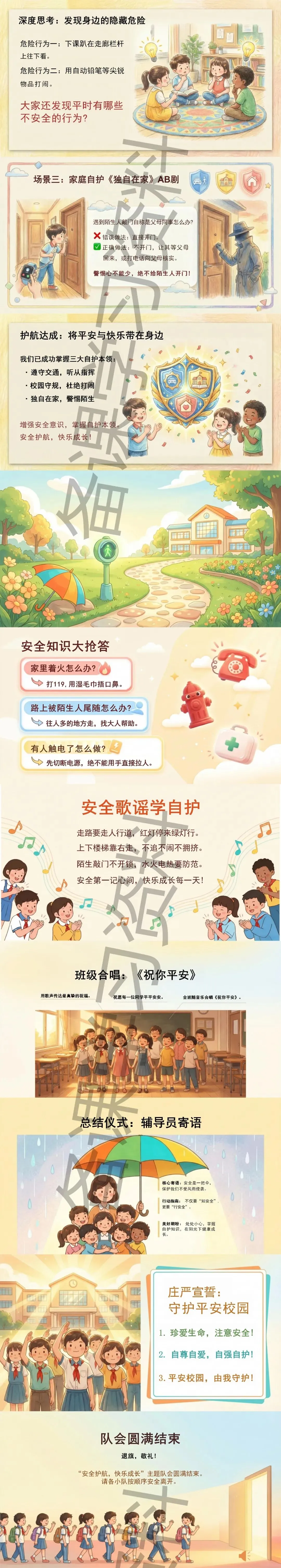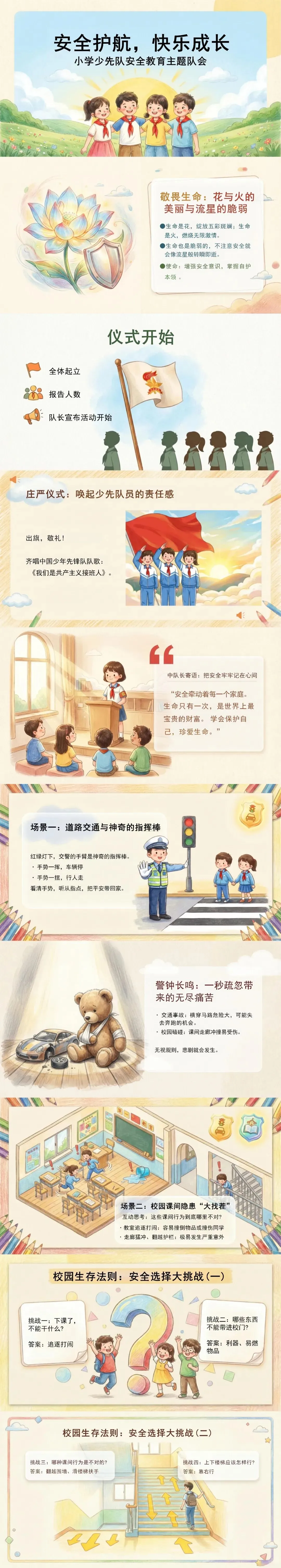 >《安全护航,快乐成长》小学队会活动PPT+逐字稿+教学设计,教师必备!!!