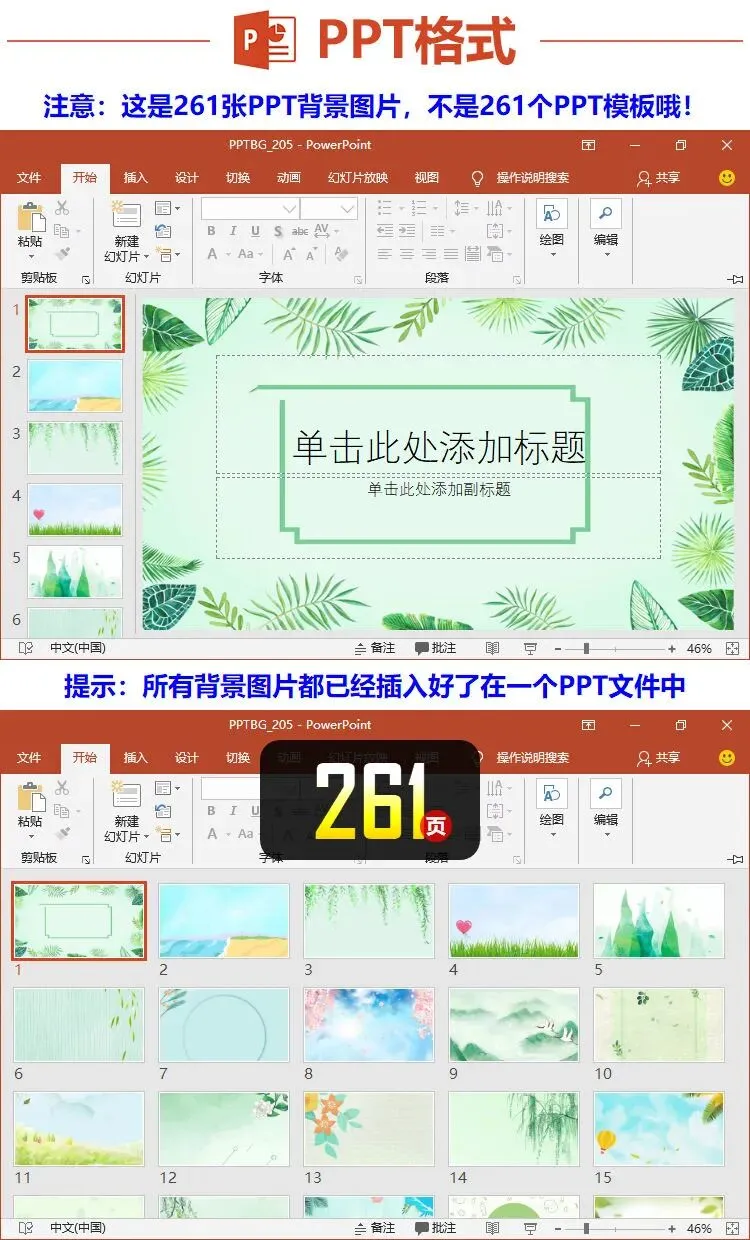 绿色环保PPT背景封面图,PPT格式和图片格式的,260张。 点开就能用!以上,就是今天分享给大家的PPT模板部分内容预览图,完整内容大家领取后慢慢欣赏吧。