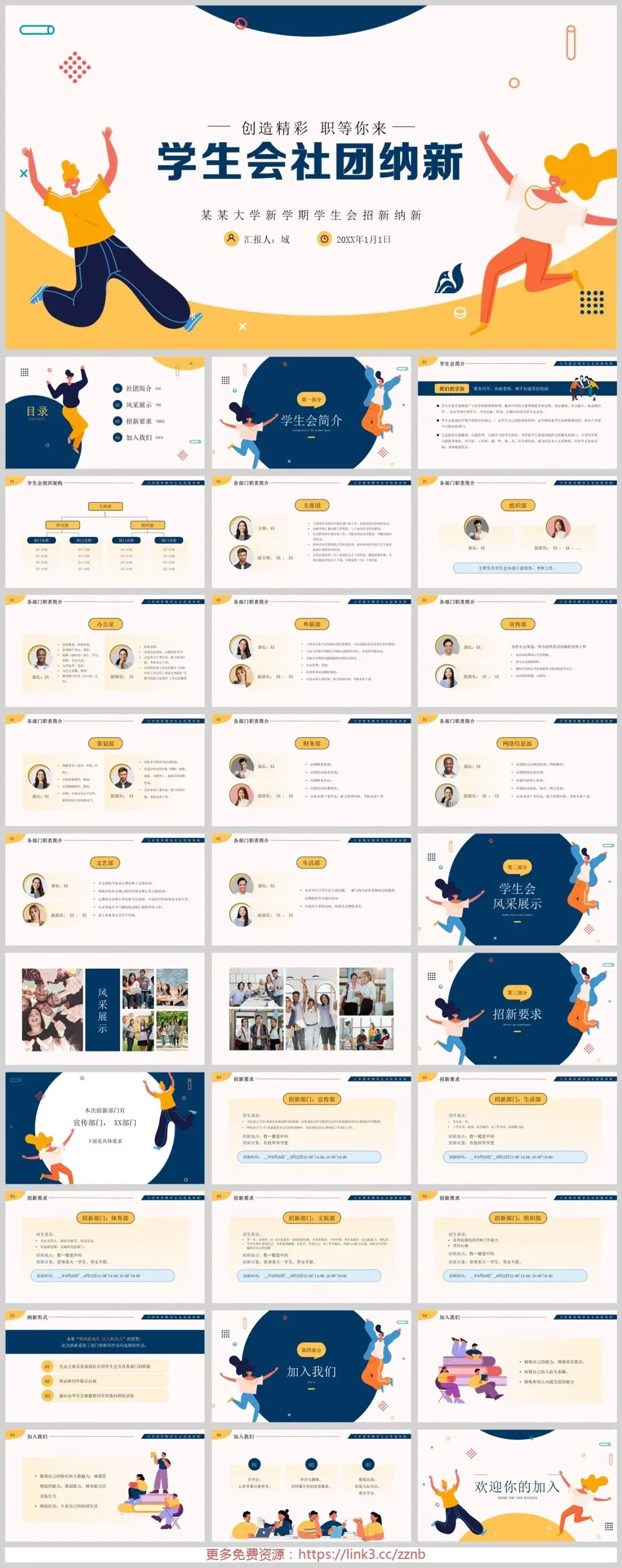 社团招新 PPT 没亮点,吸引不到新生?想清晰展示社团风采、讲清部门职责,却愁排版杂乱没活力?这份「