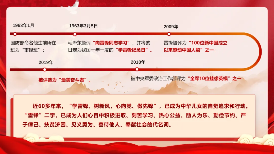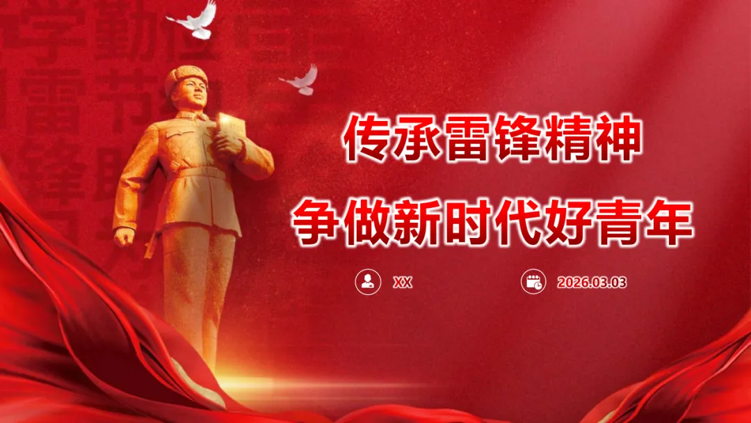 刚刚制作完成的学雷锋纪念日专题PPT课件《传承雷锋精神 争做新时代好青年》,针对2026年3月5日第63个学雷锋纪念日设计,系统梳理雷锋生平与日记原稿,深入解读雷锋精神基本内涵与时代价值。PPT页面美观大方,图文结合紧密,结构清晰,逻辑缜密,内容扎实。