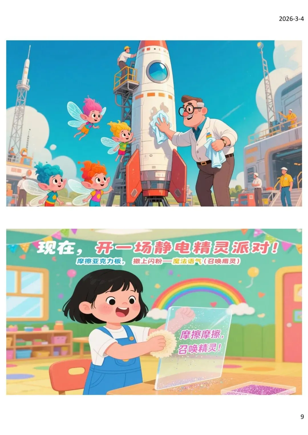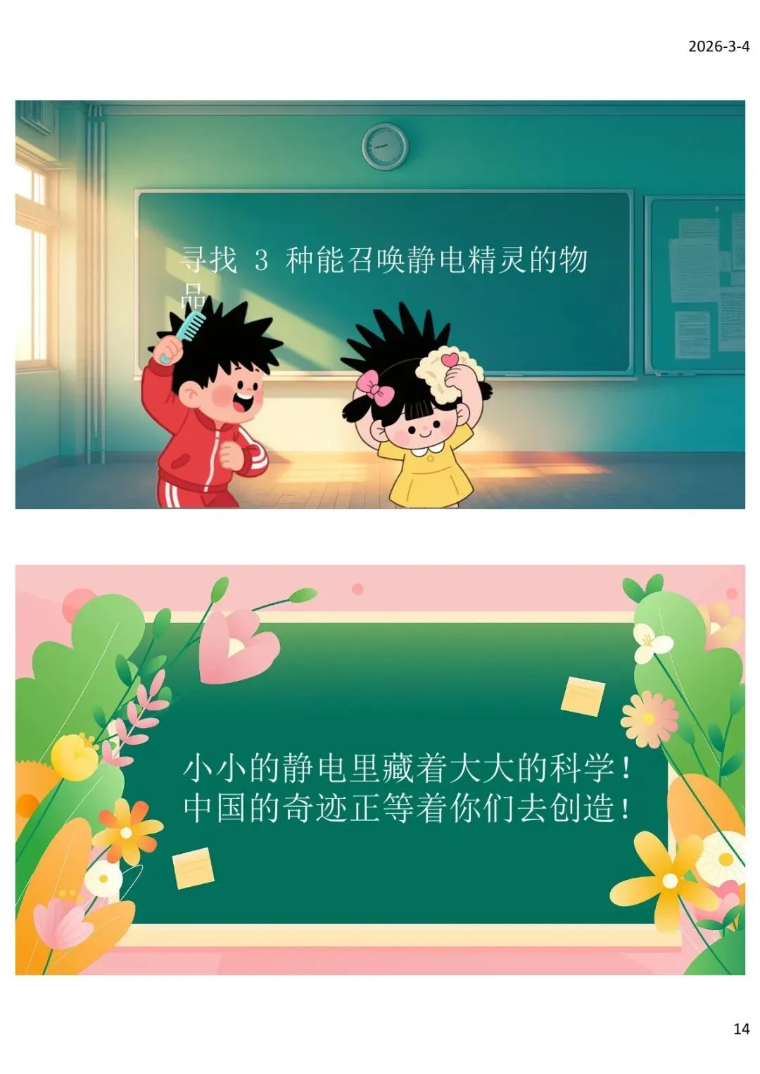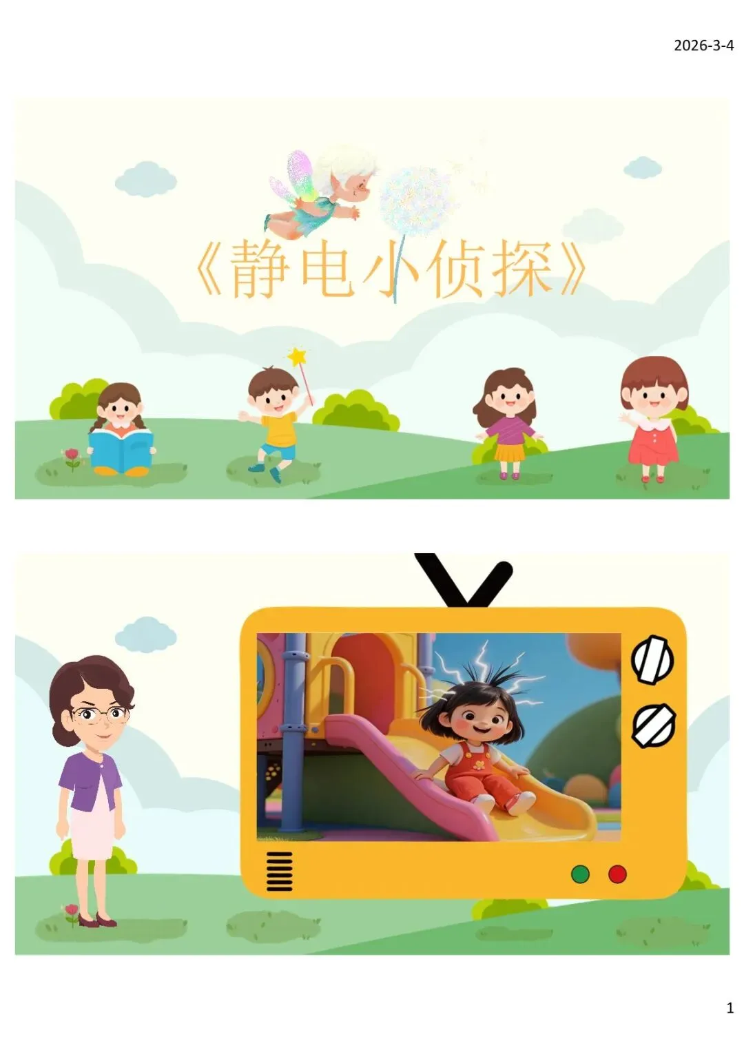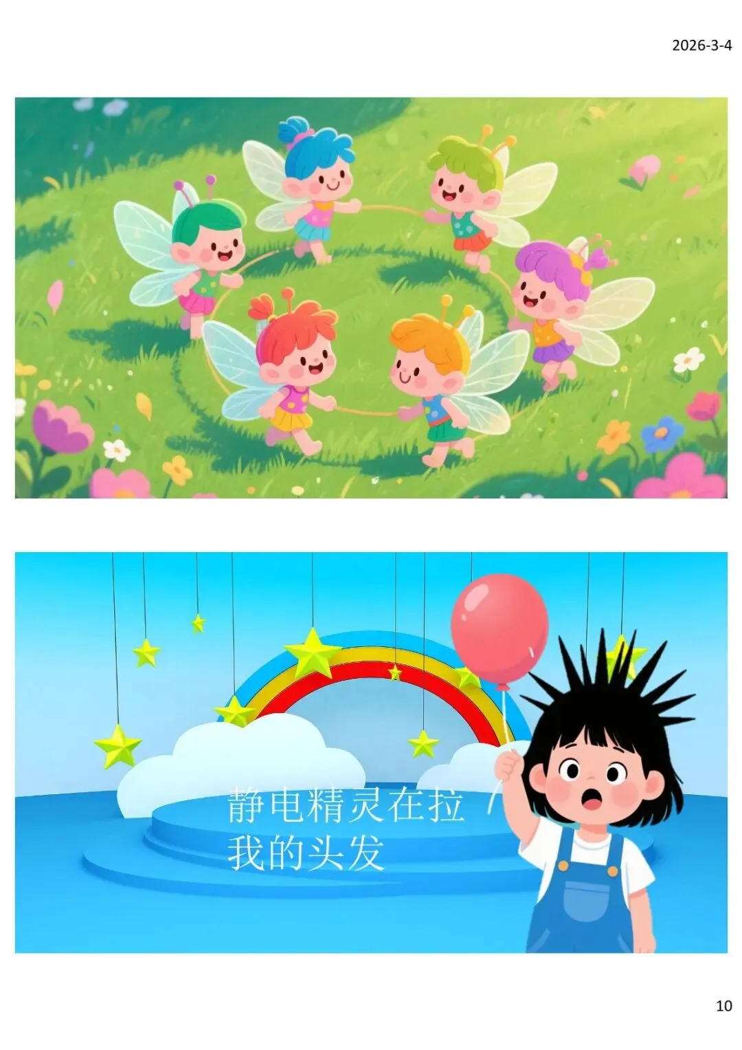 2.小结:原来,是静电小精灵藏在滑滑梯里!今天我们要像科学家一样,解开它们的秘密!