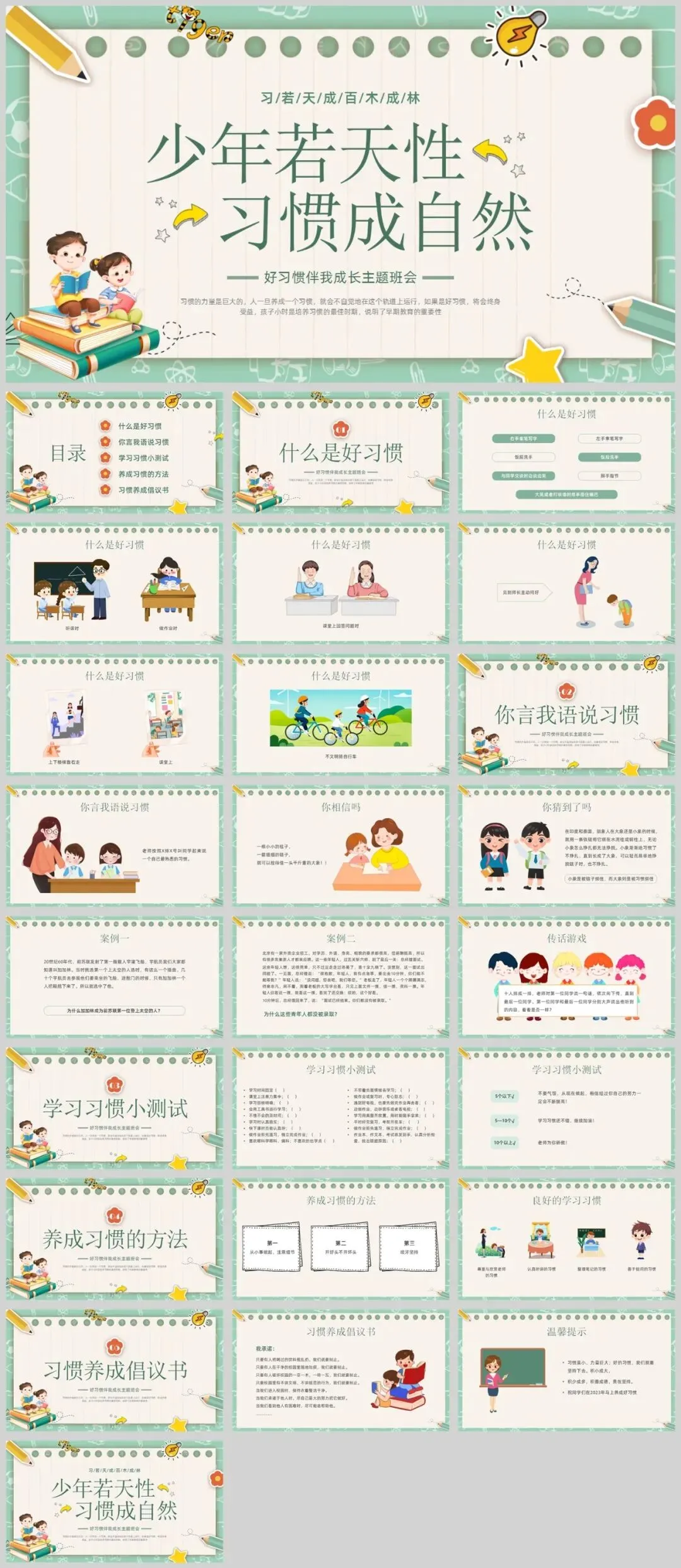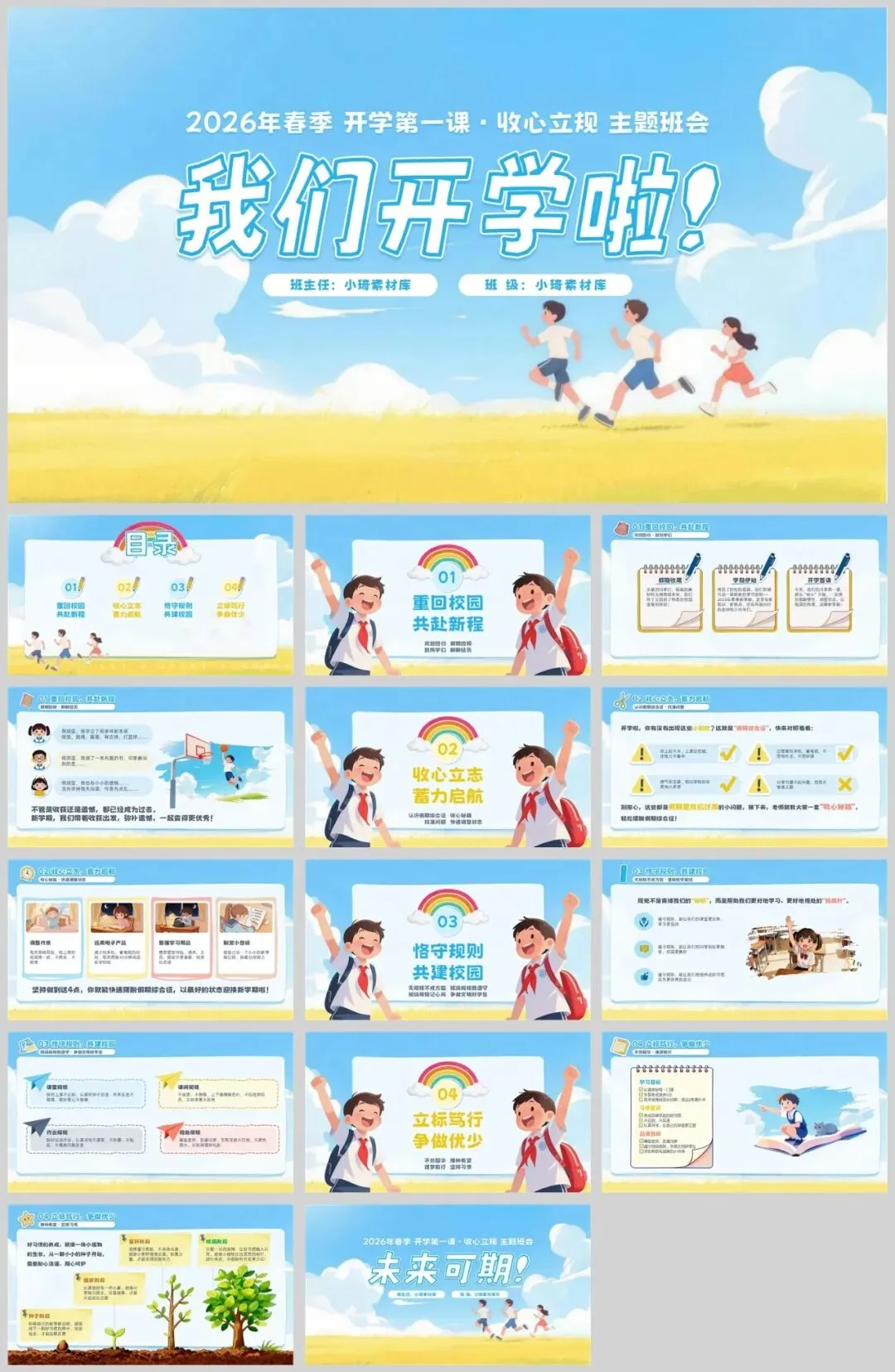 一期高质量的主题班会PPT模板是现代教育中不可或缺的教学辅助工具。以春季开学主题班会PPT为例,其采用橙色主色调和简约卡通设计风格,包含27页可编辑内容,涵盖封面、目录、文字排版等多种页面格式,不仅能够吸引学生注意力,还能有效传递教学信息,展现出教师的专业与创新。今天,小琦给大家分享一期学校主题班会PPT模板!一共有12套,快来看看吧!凡是点“在看”者,点击“进入公众号”,然后在对话框里发送“666”,就会得到一份见面礼(含ps软件、字体、素材),请多多点赞.会员获取资源地址:http://yanwu.czwk.xyz/ 小琦素材库是一个学习技能的平台,在这里已经聚集了超过3万好学上进的小伙伴,每天一起学习成长!我们要做的是用心整理优质的学习资源,而你只需要负责好好学就行了,希望你在这里每天都有收获。置顶“小琦素材库”,让我们一起疯狂成长。