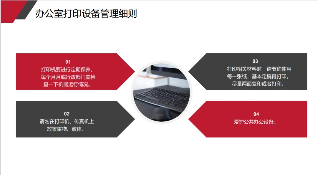 办公管理细则涵盖多个方面,以确保办公室的高效、有序和舒适运行。比如办公室电话邮件管理细则、电脑管理细则、办公用品管理细则、打印机管理细则等等,大家可以根据公司的实际情况来对新员工进行科普。