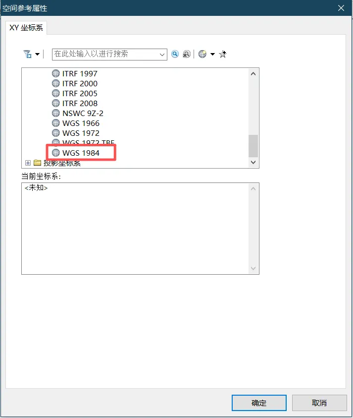 2.左上角文件,添加数据(T)→添加XY数据(A).. ,选定好XY经纬度,输入坐标的坐标系→编辑,选择地理坐标系→world→WGS 1984,确定,数据就加载进来了