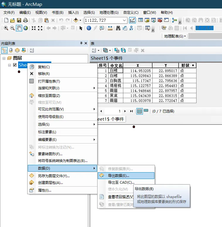 1.检查excel,X为经度,Y为纬度。Excel存储为Microsoft Excel 97-2003 工作表,后缀为.xls。注意如果是Microsoft Excel 工作表(.xlsx),一定一定要另存为Microsoft Excel 97-2003 工作表,后缀为.xls。或者,数据复制粘贴到txt中。注意:表格中一定一定不能有合并单元格,要不加载识别不了。