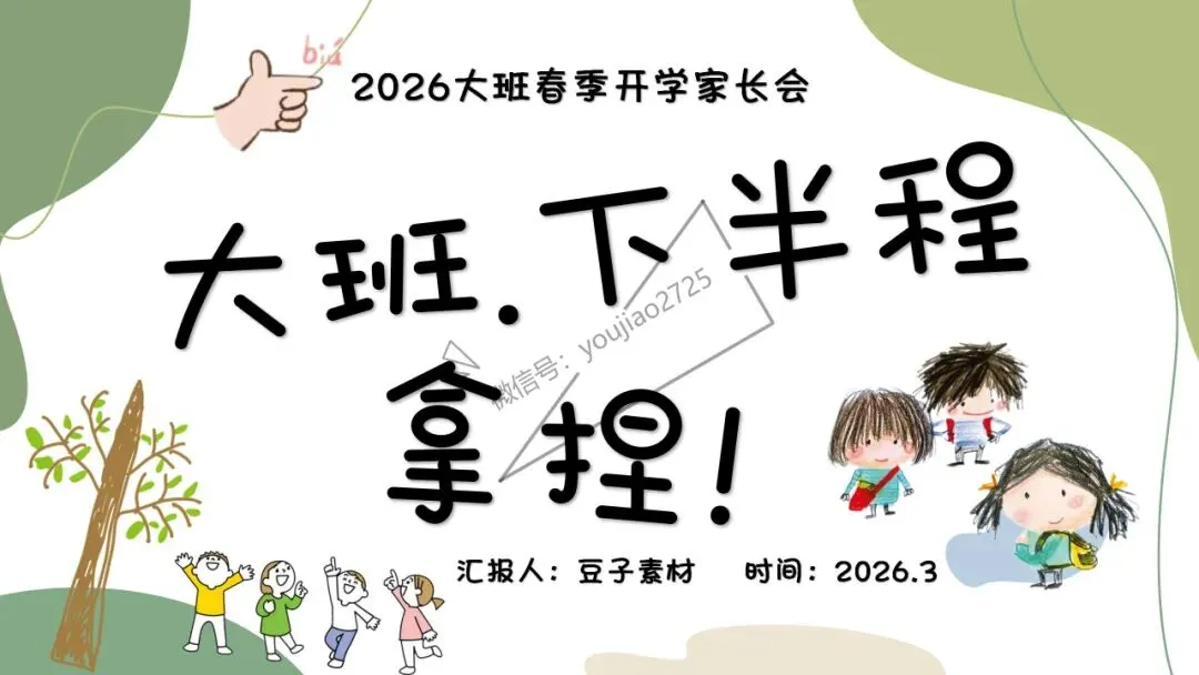 2026年幼儿园大班春季开学家长会PPT模板《大班·下半程拿捏!》附送讲稿-54页