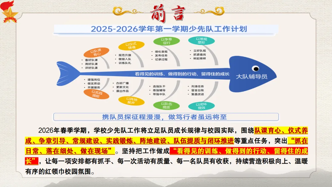 2026年春季第二学期少先队工作计划PPT——携队员探征程漫漫,做笃行者虽远将至
