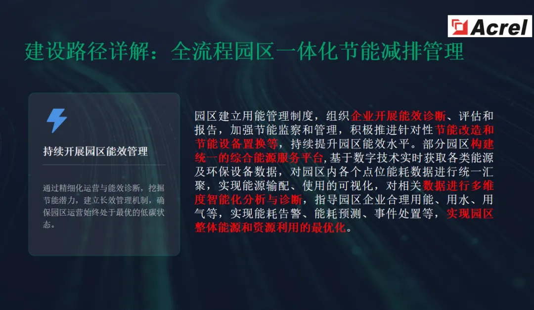 提升园区能碳管理能力。支持园区建设覆盖主要用能企业的能碳管理平台,强化园区及企业用能负荷监控、预测与调配能力,为碳排放核算、源网匹配调节、电力需求侧管理、多能协同互补、资源高效循环利用等工作提供支撑。