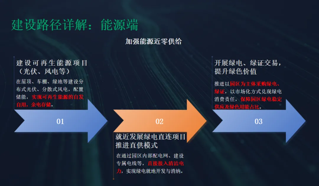 加快园区用能结构转型。加强园区及周边可再生能源开发利用,科学配置储能等调节性资源,因地制宜发展绿电直连、新能源就近接入增量配电网等绿色电力直接供应模式,鼓励参与绿证绿电交易;