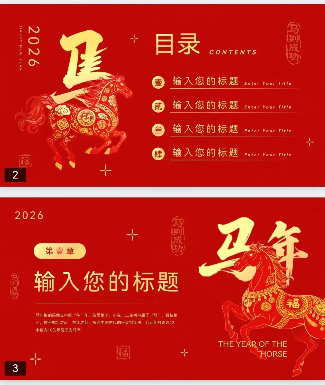 78套马年主题PPT模板新年计划PPT模板2026年PPT模板春节免费下载(转发收藏)