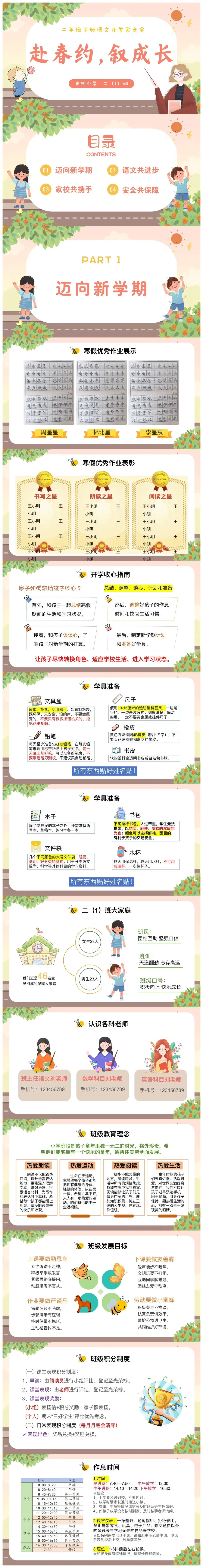 【二下开学初家长会】赴春约,叙成长(PPT+发言稿)