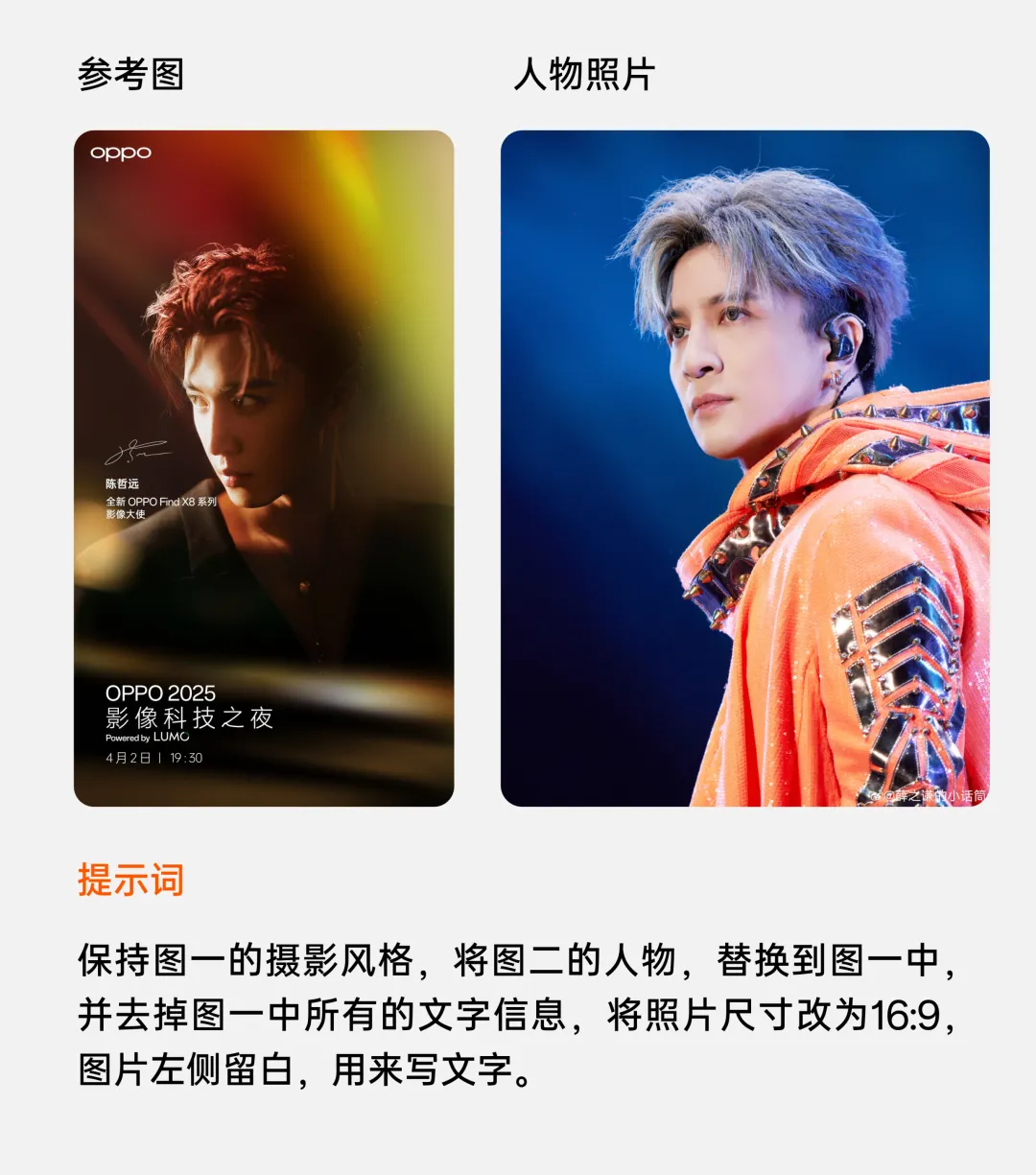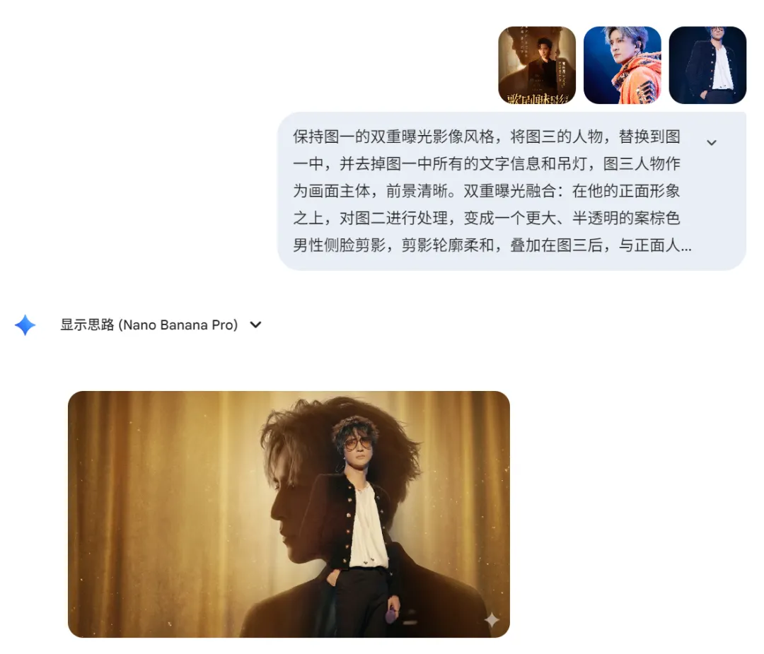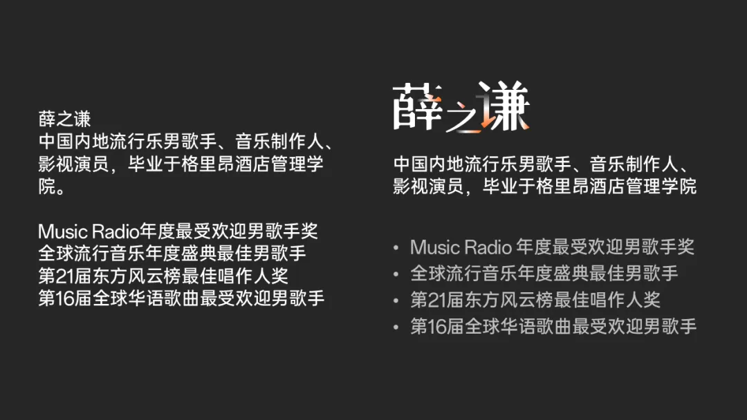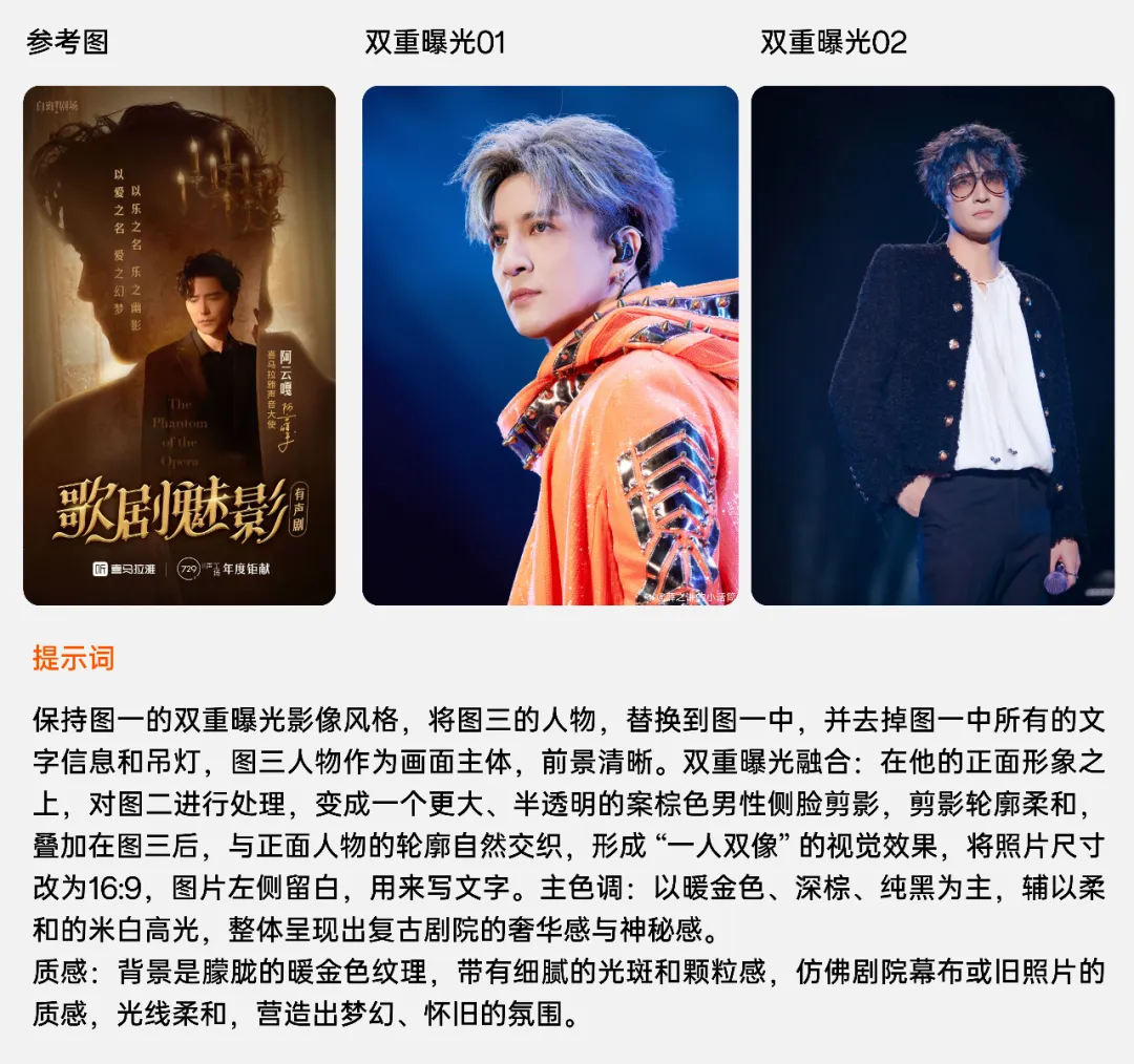这两天一打开微博,词条上挂的最多的明星,就是【薛之谦】!娱乐圈的事,咱也就看个乐呵,但作为一名合格的PPT博主,正好趁着这波热度,教大家点PPT干货!比如你平时是不是经常碰到一张图,加一段话的人物介绍 PPT,但不知道如何排版高级?那今天就用薛之谦的案例,来给大家讲解吧!2026年,我们的思路,可以分为两个环节,分别是AI生图+信息排版:我们可以把人名或者职称、荣誉等信息放大,不太重要的信息呢,可以弱化,形成对比。我的建议是,不要直接让AI来生图,一是人物信息不准确,二是没办法匹配设计的需求。比如拿这个图来讲,如果我们想让人物照片,变成图一的效果,那么,我们需要给出这个提示词:大家要注意,务必要求生成的新图片,尺寸为16:9,便于排版。用即梦或者Nano Banana 都可以,我们来看下生图效果:最后,把文字内容放在生成好的图片上,完成排版布局,就可以了:同样地,如果你想换个思路,比如形成页面穿插的效果,你可以找一个类似风格的参考素材:当然,当你能理解了这个思路,再上个难度,比如我们要做出这种的双重曝光效果:接下来,让AI帮我们合成一张符合排版布局的,双重曝光的素材风格:如果你平时做PPT,遇到截图排版、图片排版、人物排版....的PPT,完全没思路!推荐你看看这份500页的创意图文排版模板: