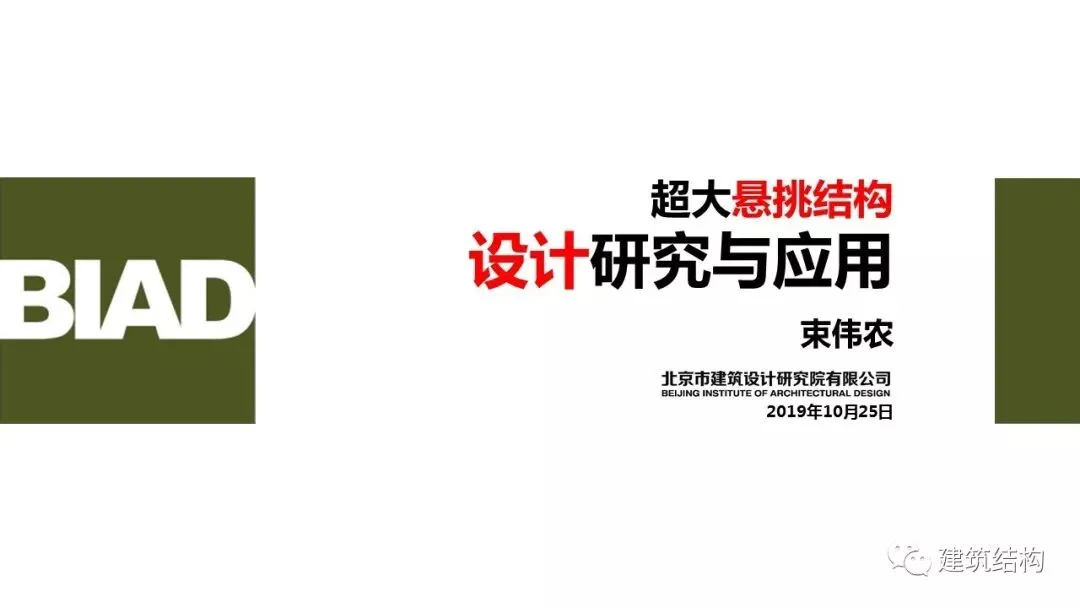 “第十七届高层建筑抗震技术交流会暨北京建院成立70周年结构创新论坛”于2019年10月23-26日在首都北京召开(点击查看会后报道)。北京市建筑设计研究院有限公司总工程师束伟农做了题为“超大悬挑结构设计研究与应用”的精彩报告,与大家分享!