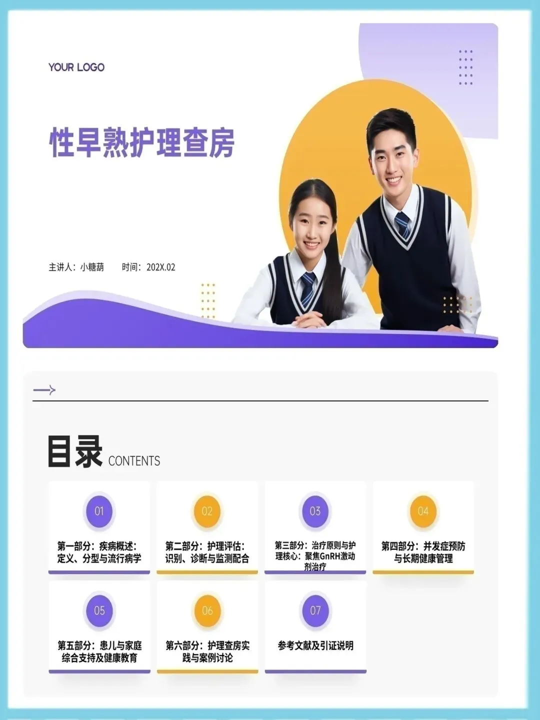 >性早熟护理查房ppt模板(可编辑)
