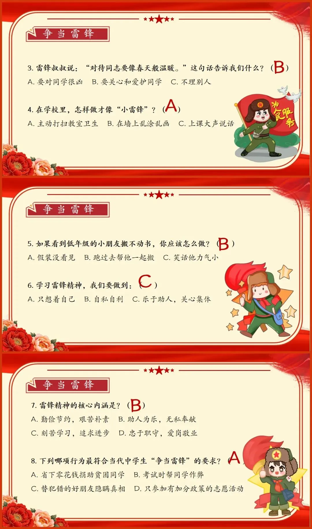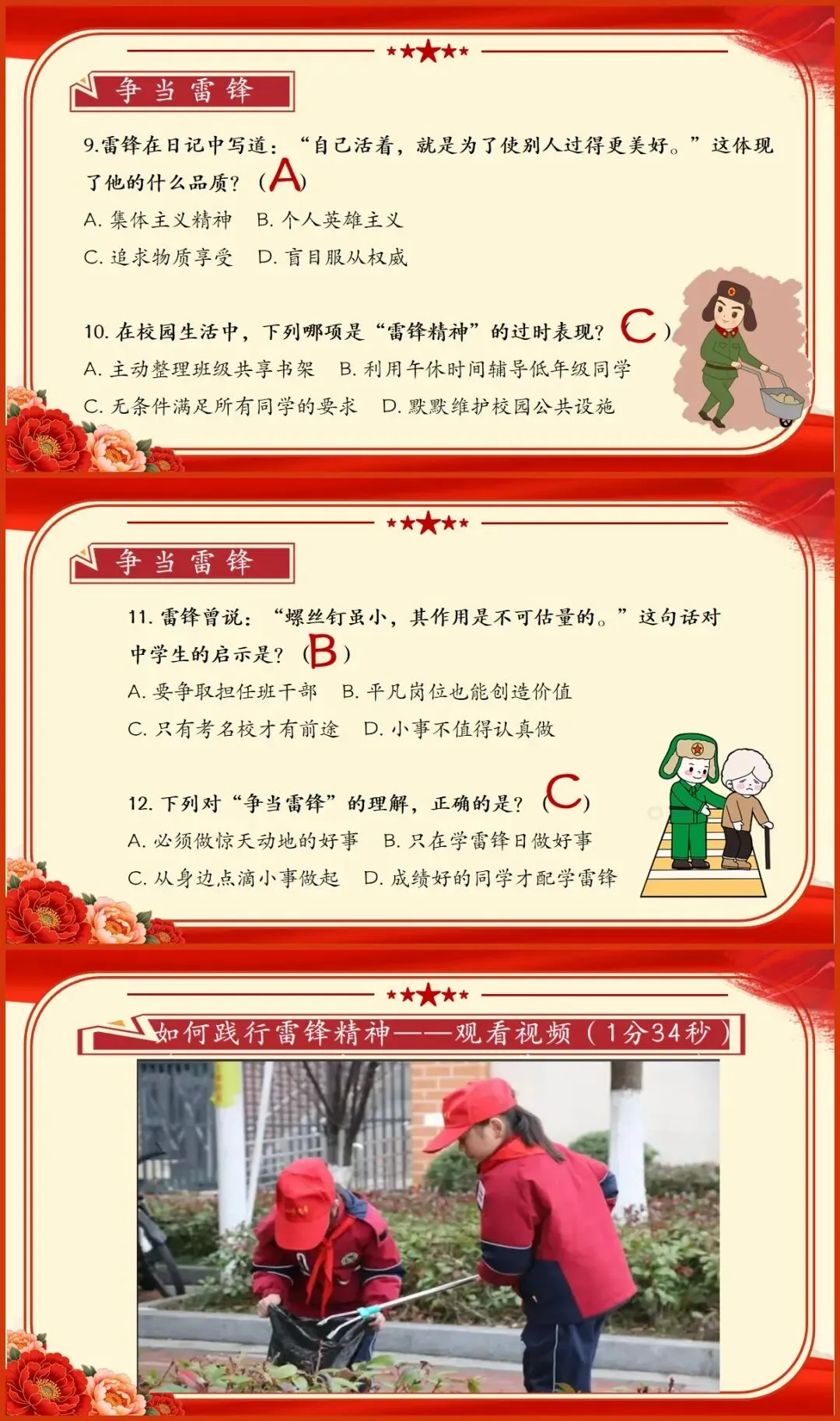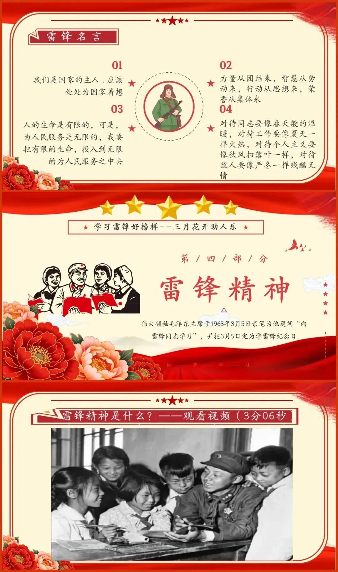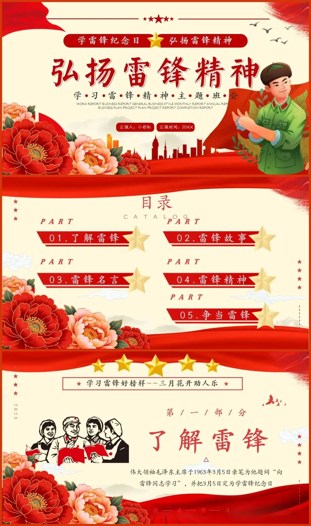 谁还在为学雷锋班会熬夜做PPT?这套成品直接抄作业!✅从雷锋生平、经典故事到“钉子精神”解读,逻辑超清晰。最绝的是配套了12道随堂互动题,低年级娃也能秒懂。课堂上放了短片,再带娃做“班级小雷锋”宣誓,氛围感拉满。不仅教会孩子助人为乐,更把奉献精神落到了日常小事里。