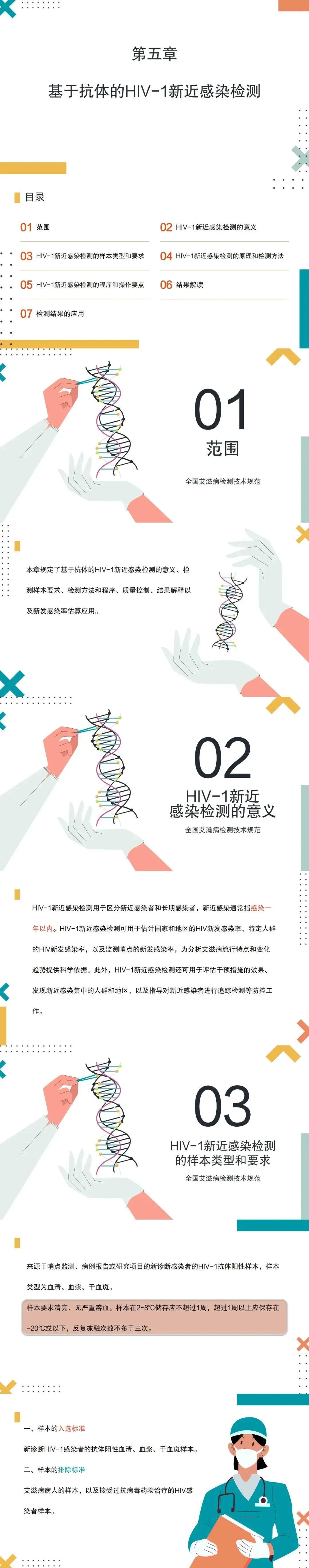 - 系统梳理HIV-1新近感染检测的意义、HIV-1新近感染检测的样本类型和要求、HIV-1新近感染检测的原理和检测方法、HIV-1新近感染检测的程序和操作要点、结果解读等内容;