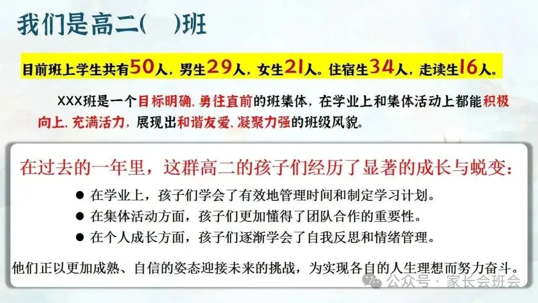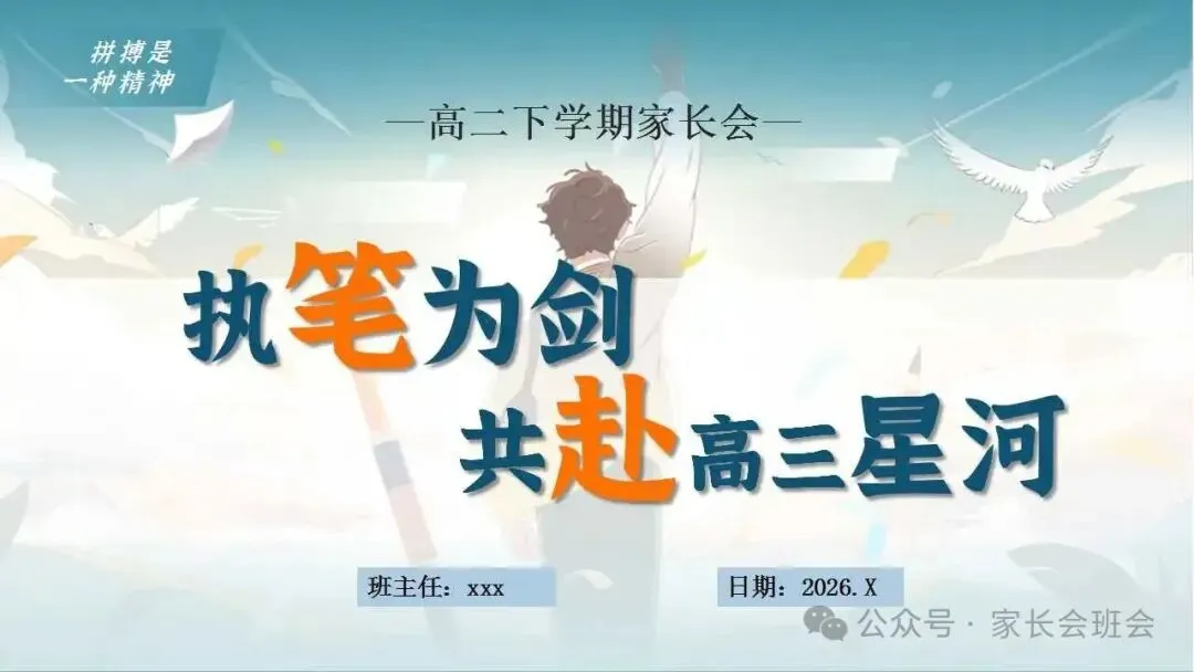 高二下学期开学家长会ppt:执笔为剑,共赴高三星河.(含发言稿、视频)