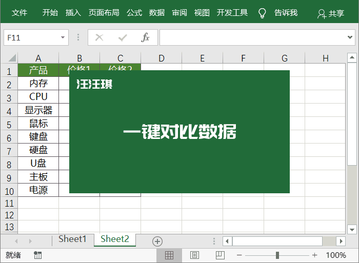 一键对比两列数据