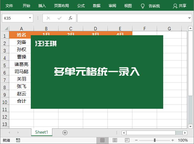 多单元格统一录入