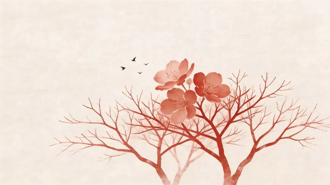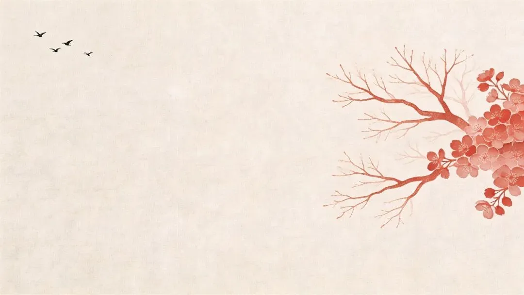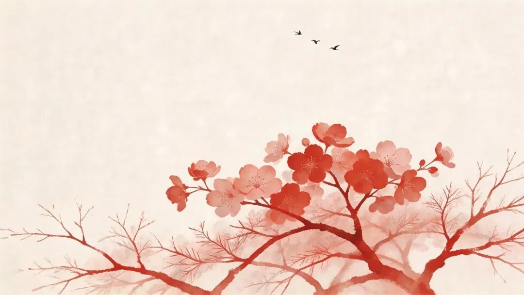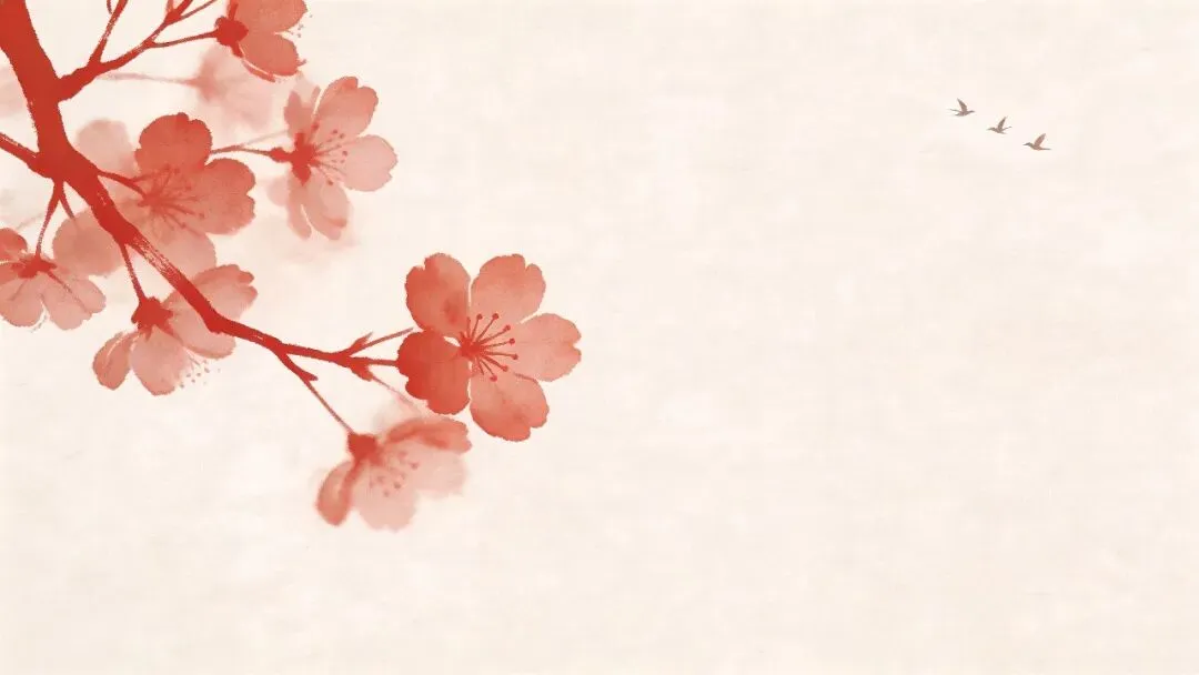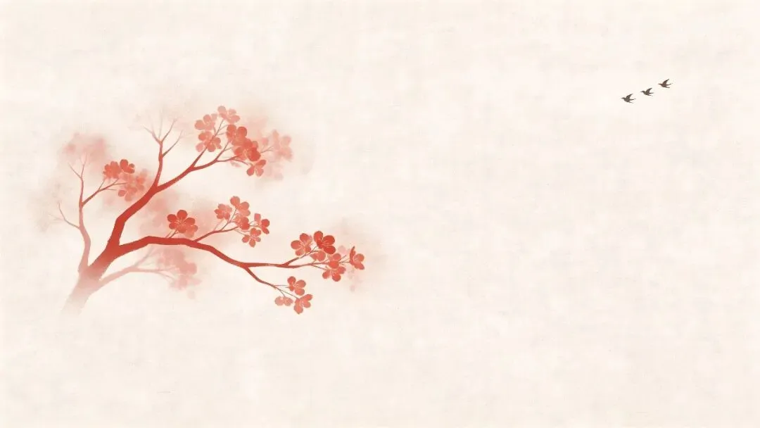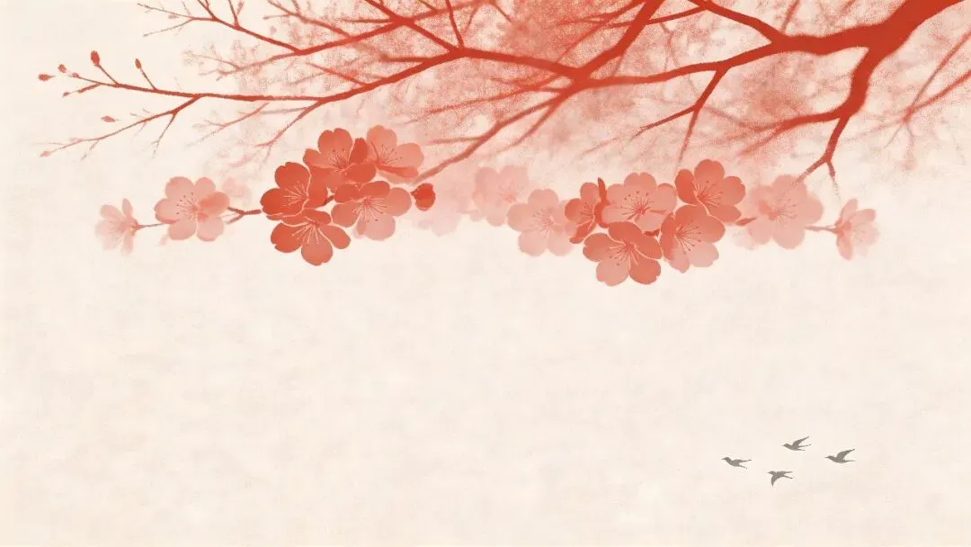 国风PPT背景素材上新!水墨风格的红梅系列,朱砂红与浅米底碰撞出雅致氛围感。8张图构图各有特色,左枝、中景、右枝等布局,满足不同排版需求