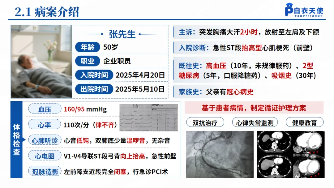 >【护理个案PPT】基于5A模式的心肌梗塞患者循证护理(可自由编辑)