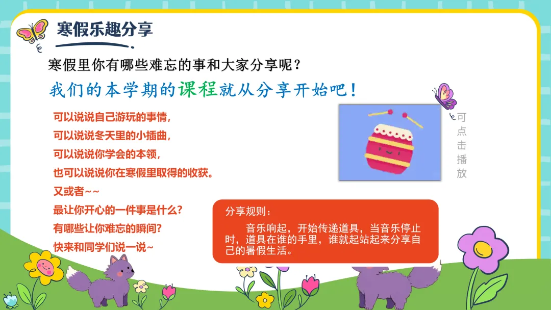 播放视频引出寒假趣事分享
