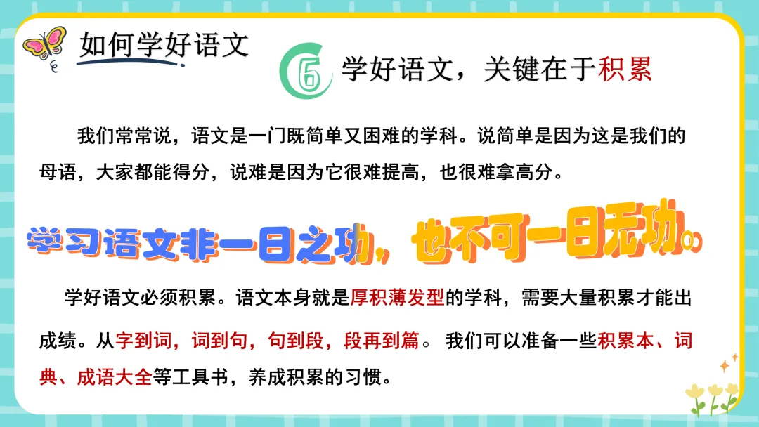 5.阅读——提高语文的关键6.积累——学好语文的储备