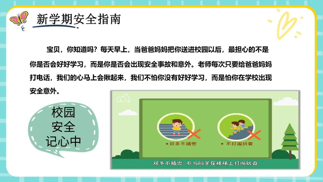 宝贝,你知道吗?每天早上,当爸爸妈妈把你送进校园以后,最担心的不是你是否会好好学习,而是你是否会出现安全事故和意外。老师每次只要给爸爸妈妈打电话,我们的心马上会揪起来,我们不怕你没有好好学习,而是怕你在学校出现安全意外