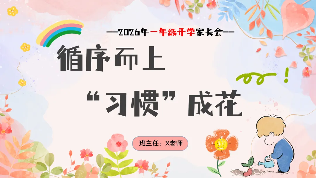 很高兴在这与您相遇,如果您是一位班主任老师,每天除了应对繁重的教学工作,还要加班整理班级、教务、教研、课件PPT资料,请关注下方的“小木教务资料”,让我们风雨同路、一起成长~今天分享的是2026年春季下一年级开学家长会的ppt课件和配套的发言稿,主题是《循序而上“习惯”成花》循序而上“习惯”成花