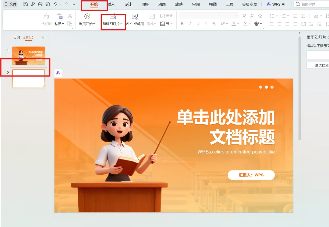 点击开始——新建幻灯片