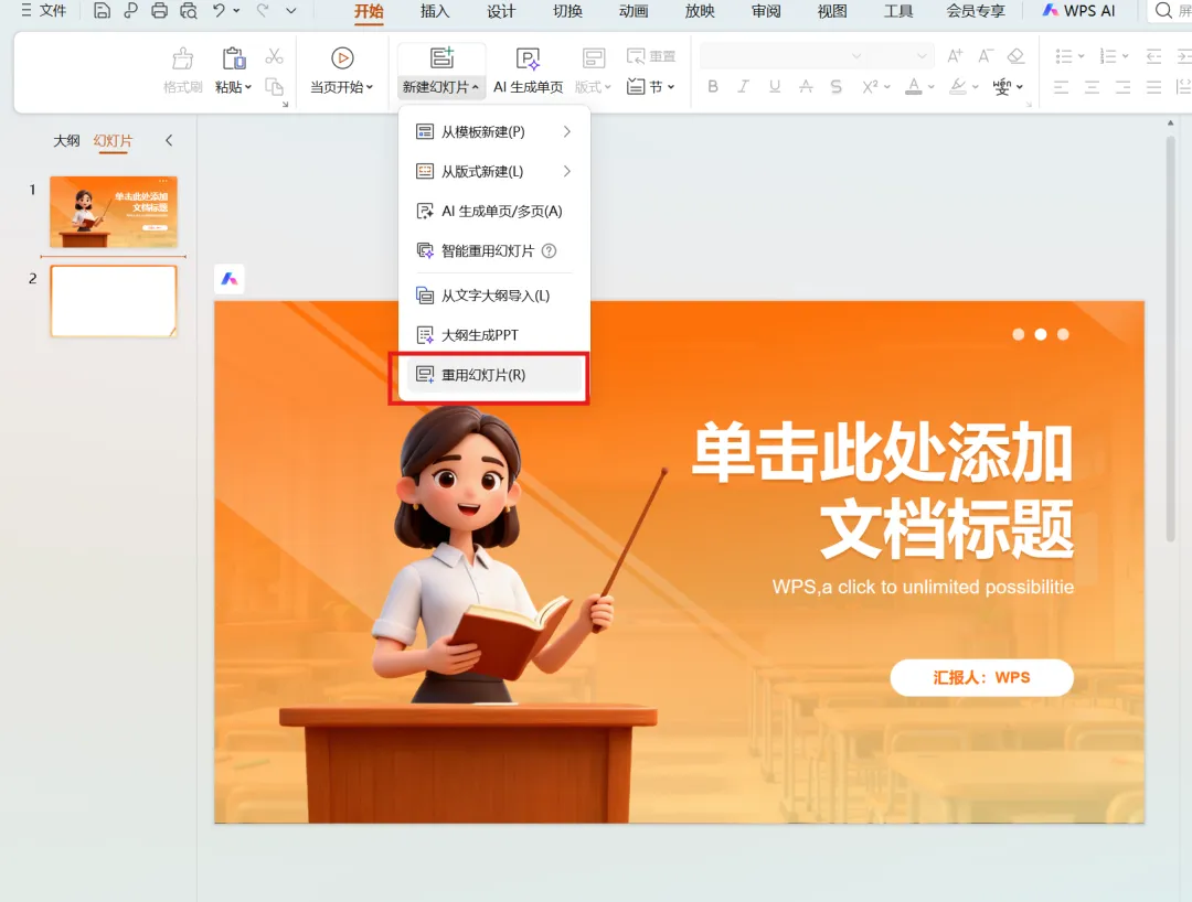 点击重用幻灯片
