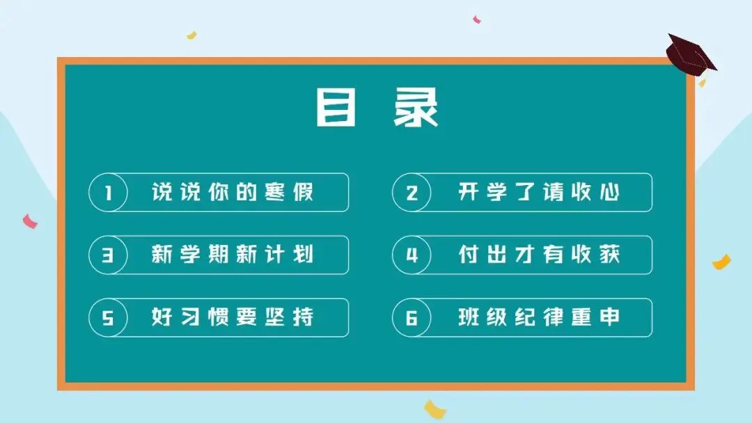 PPT 涵盖了从寒假分享、收心调整、新学期计划制定,到学习方法指导、习惯养成、纪律重申和安全教育等多个方面,逻辑清晰,层层递进,能够全面地帮助学生适应新学期的学习生活。