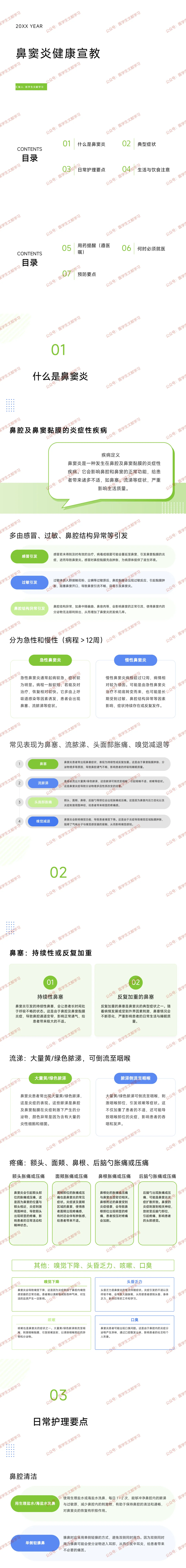 定义:鼻腔及鼻窦黏膜的炎症性疾病,多由感冒、过敏、鼻腔结构异常(鼻中隔偏曲、鼻息肉)引发。