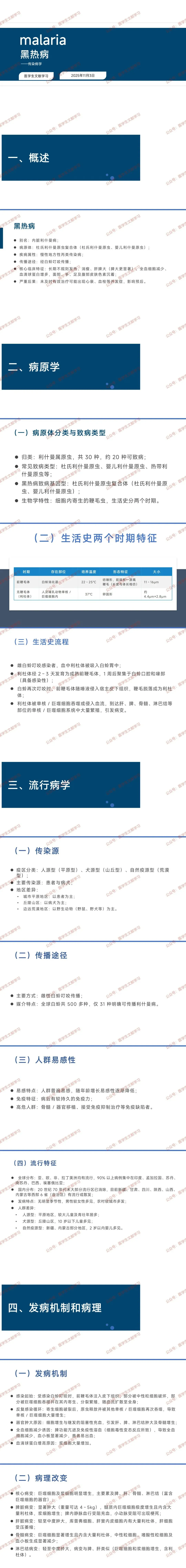 - 核心过程:利杜体在单核 / 巨噬细胞内繁殖,导致细胞大量增生,引发肝、脾、淋巴结肿大;脾功能亢进及免疫性溶血致全血细胞减少,浆细胞增生使血清球蛋白增高。