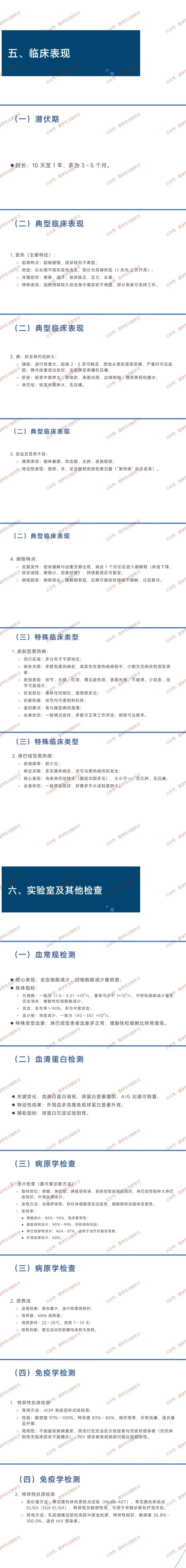 - 需与白血病、疟疾、慢性血吸虫病、结核病、伤寒等表现为 “长期发热、脾大、白细胞减低” 的疾病鉴别。
