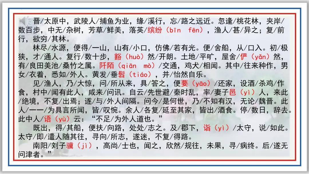 八下PPT:9.桃花源记(教案+音频)| 三合一,免费送