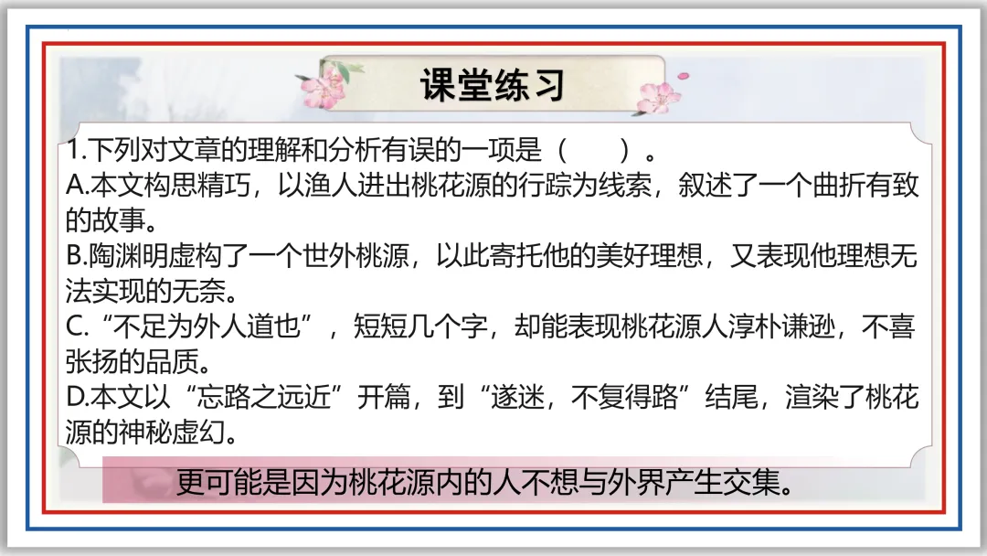 PPT八下《桃花源记》《小石潭记》对话先贤情境题