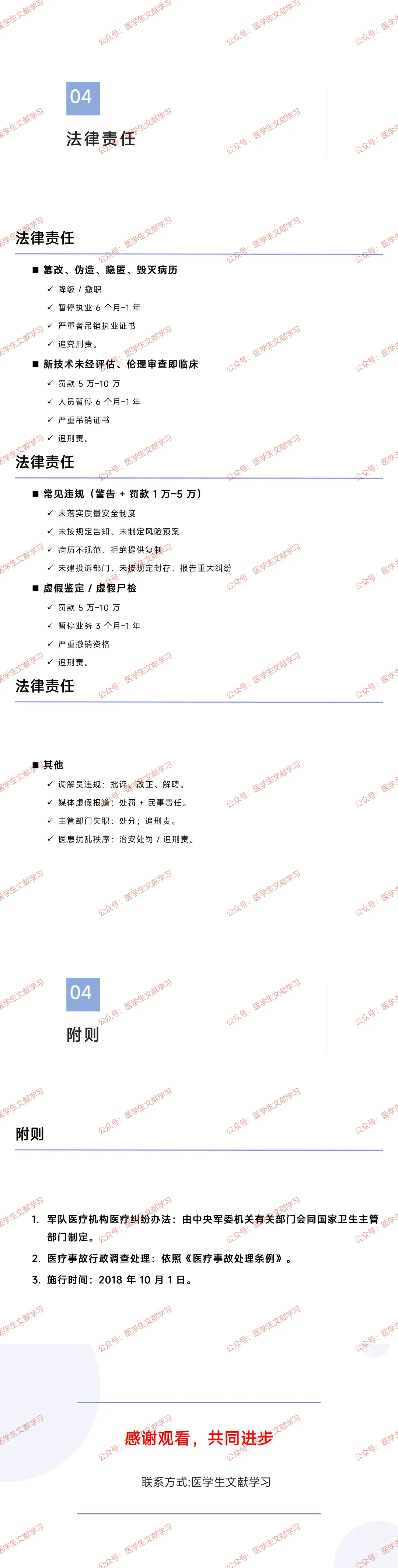 篡改、伪造、隐匿、毁灭病历:给予降级 / 撤职处分,暂停执业 6 个月–1 年,情节严重的吊销执业证书,依法追究刑事责任。