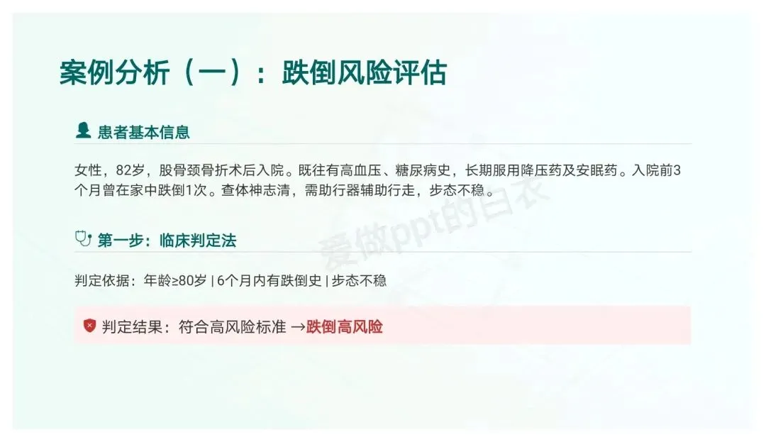 继上期成人住院患者跌倒风险评估及预防图文详解后,本期正式发布《成人住院患者跌倒风险评估及预防》完整版培训PPT。可直接用于科室培训、教学考核。