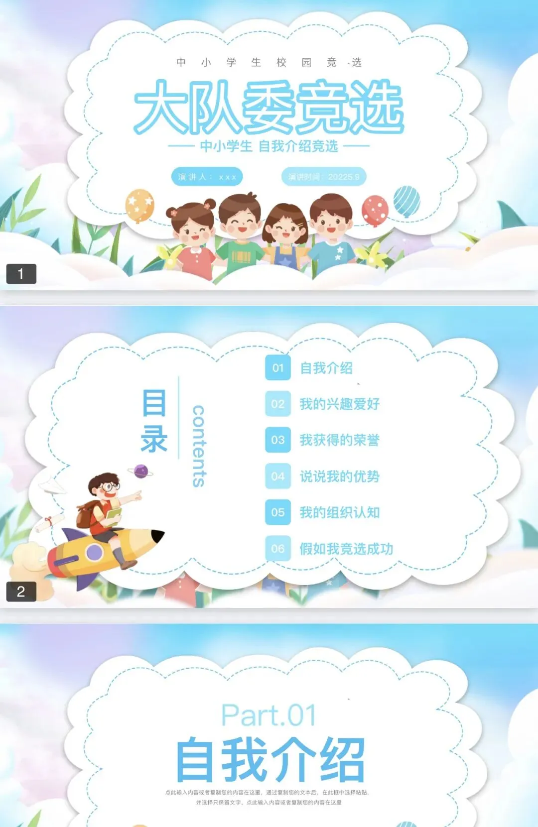 本文内容分享【小学竞选大队委演讲稿+PPT】