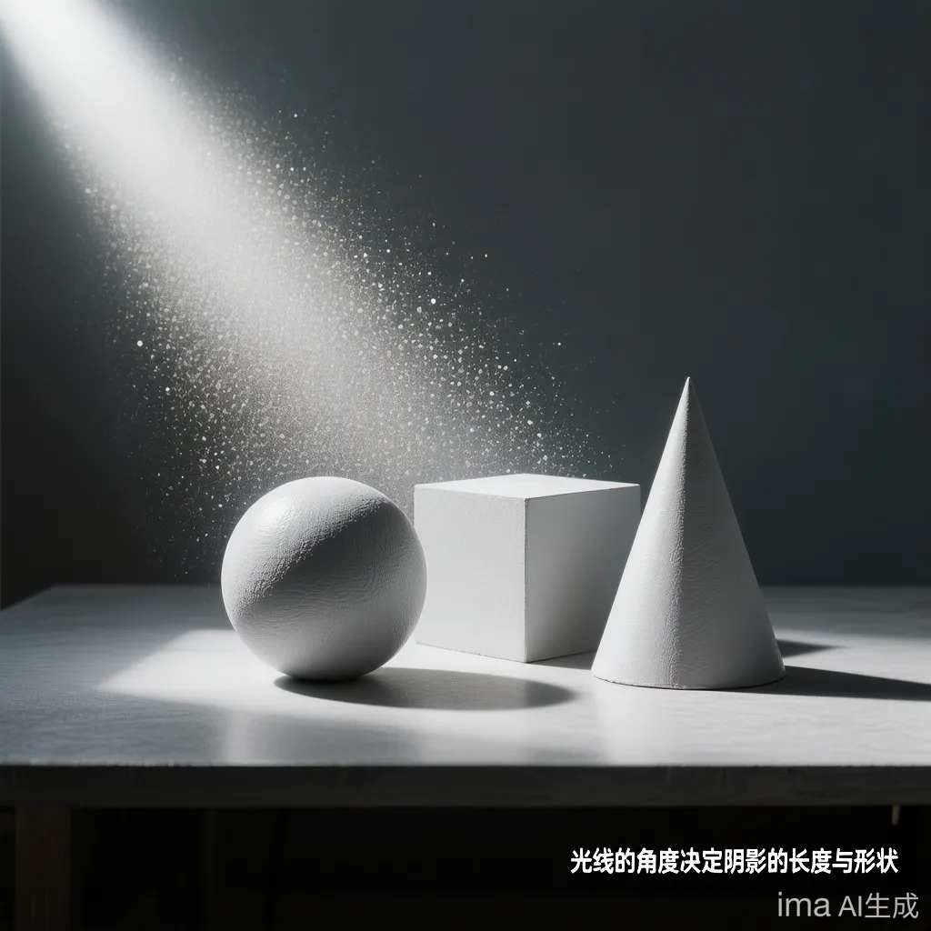 【光影宪法】:光源、方向、质感、阴影。(至少3条具体描述)