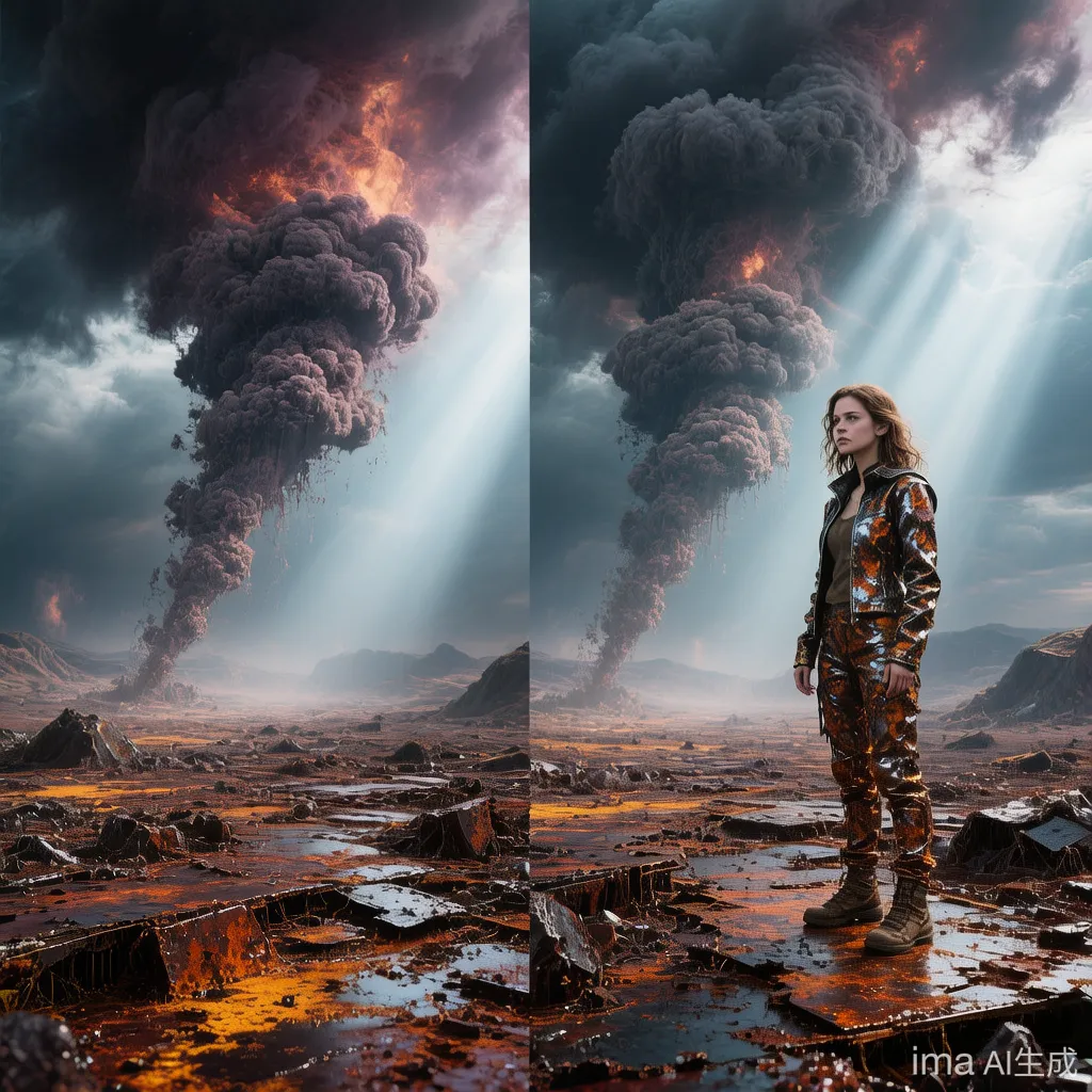 “魔法”验证: 生成后,你会惊叹。夕阳的角度、光的颜色、画面的暖灰基调,与空镜完美匹配! 艾拉完全融入了这个“末世黄昏”的世界。