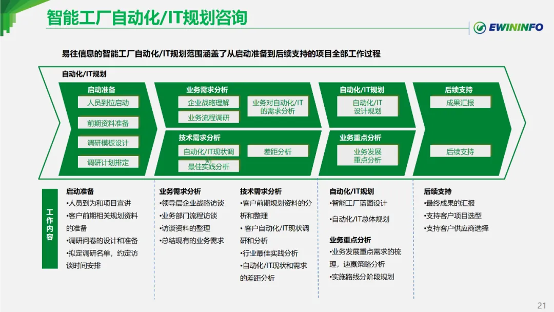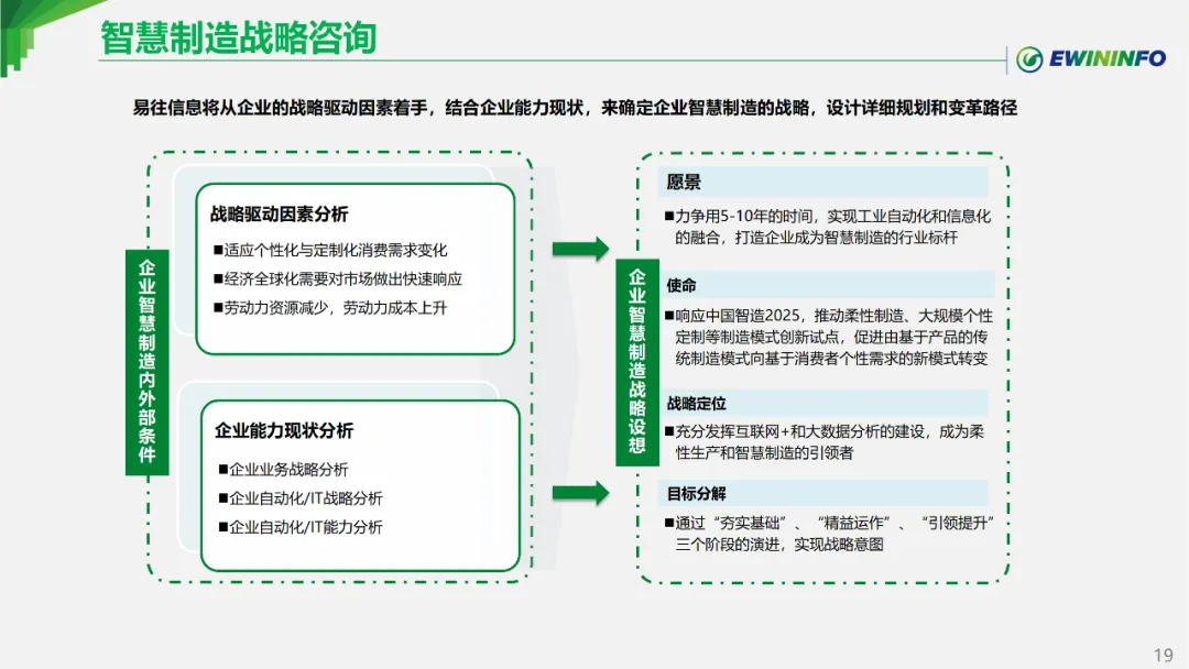 构建智能工厂并非一蹴而就,它需要企业从战略层面进行规划,分阶段实施。从智能制造战略咨询到两化融合管理体系咨询,再到智能工厂自动化/IT规划咨询,每一步都至关重要。通过这些规划,企业能够明确自己的定位和发展方向,为智能工厂的构建奠定坚实基础。